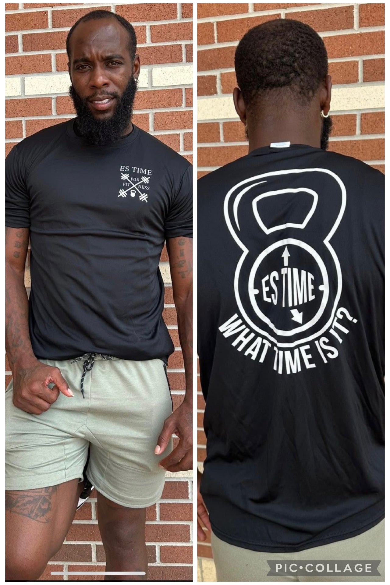 Black ES TIME FOR FITNESS Dri Fit shirt White Logo front and back
